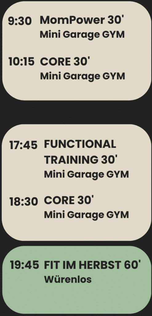 Schau dir den Stundenplan an. Welches Training könntest du in deinen Alltag integrieren?